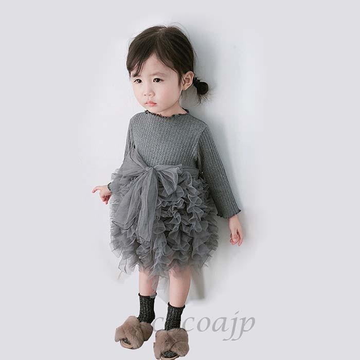 カワイイ の視線が集まる ふんわりチュールスカートのワンピース 長袖 70 90 Pearls パールズ