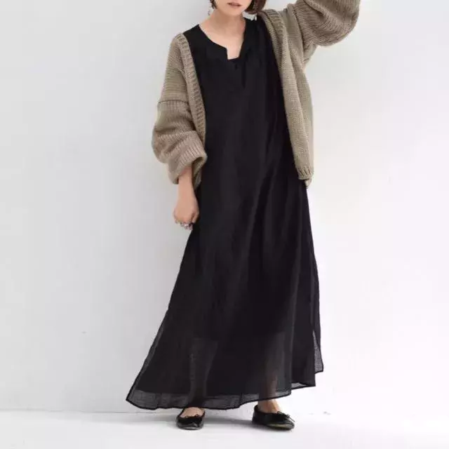 楽天市場 全3色 4サイズ 綿麻マキシワンピース チェック柄 リネンワンピース マキシワンピース ワンピース マキシ丈 麻 長袖 カジュアル 春 秋 Erieri